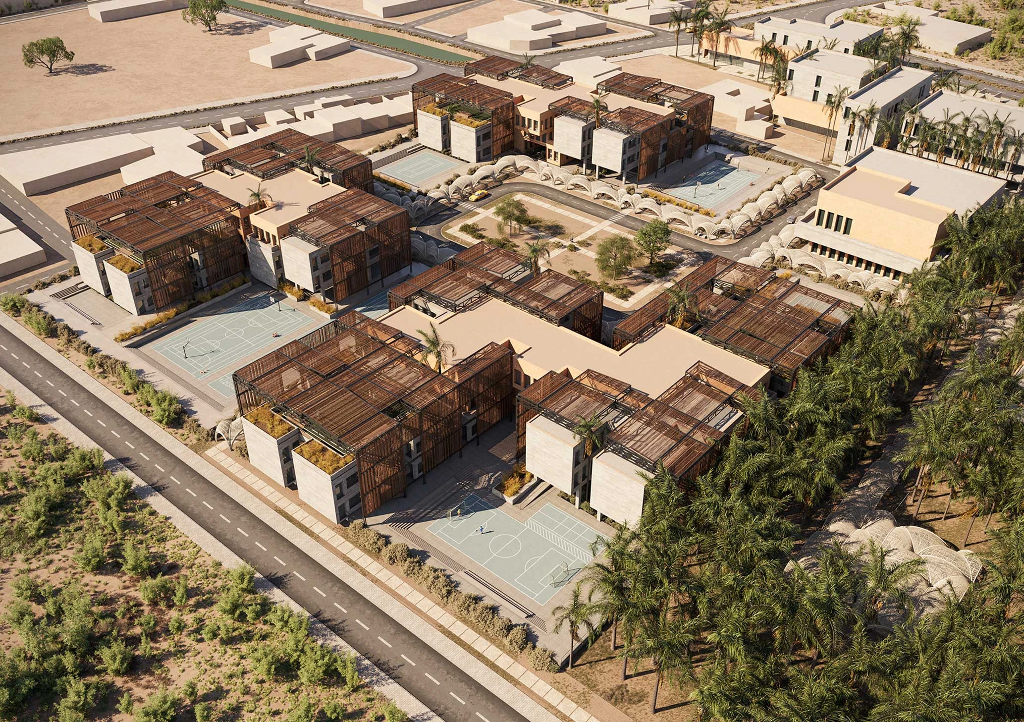 شهرک آموزشی سرمد در منطقه اروند، یک سایت نه هکتاری در جزیره مینوست که شامل شش مدرسه، امکانات فرهنگی، ورزشی و کمکآموزشی است. در طرح برگزیده با هدف ترکیب بخشی از فضای آموزشی با قلمرو عمومی، طراح از طریق نفوذ یک پیادهراه شهری از گوشه، منفصلترین بخش زمین که از کیفیت بالایی برخوردار است را به عامل پیوستگی تبدیل کرده تا امکانات عمومی همچون سالنهای ورزشی و فضاهای فرهنگی همواره از شهر و مدرسهها در دسترس باشند.